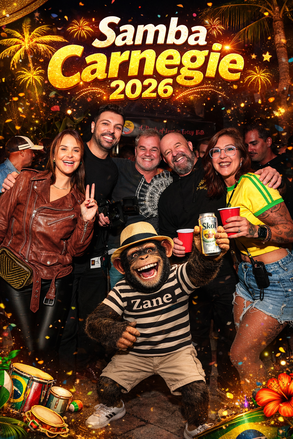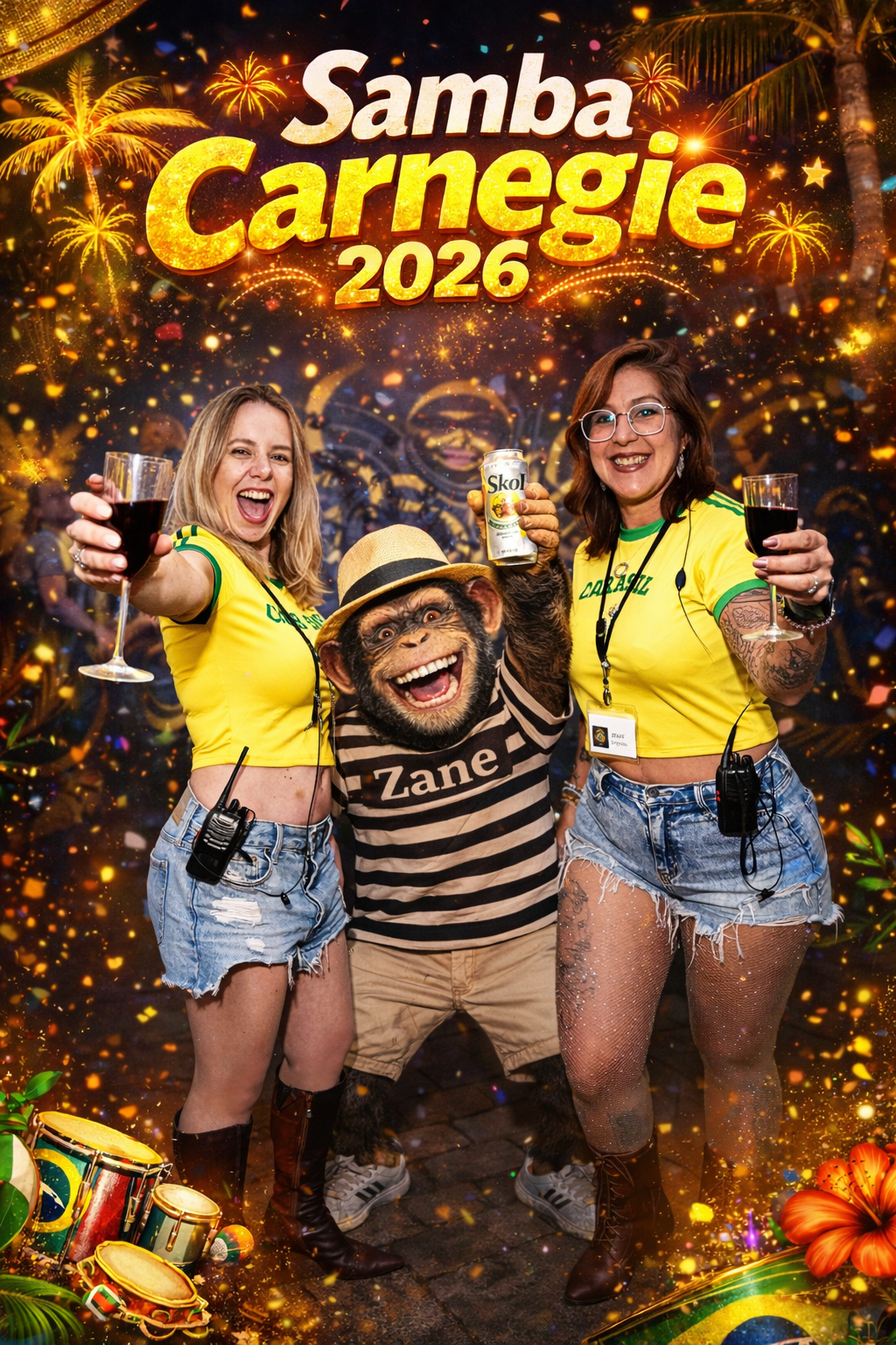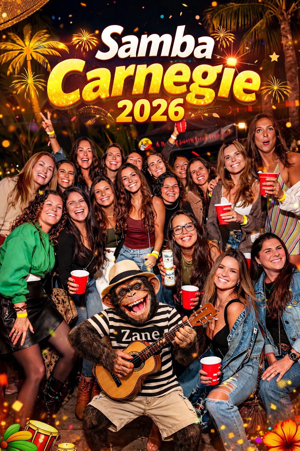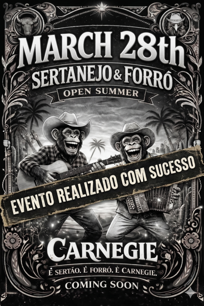 Carnegie Events was born in 2011 in Redondo Beach, when four friends turned a house into an event incubator that launched several businesses for the Brazilian community. Guided by our official mascot, Zane the Monkey, we bring the soul of Brazil to unforgettable nights in Los Angeles through traditional parties and music. Our productions follow three core rules: live bands, ice-cold beer, and more women than men. We blend Brazilian vibes with California style, ensuring events where everyone feels free and present. A curated experience designed to celebrate the rhythm and moments that are impossible to forget.